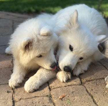 Our fluffy crew just turned 16 weeks old — time truly flies when every day is filled with wagging tails and happy barks! The puppies are now confident little explorers, full of curiosity and charm. They love spending time outdoors, chasing leaves, playing with each other, and—of course—melting hearts wherever they go. The bond between them and their humans keeps getting stronger each week. They’re learning routines, enjoying cuddles, and showing so much personality. Some love to play leader, others prefer to snuggle, but all of them are pure joy wrapped in white fluff. We’re so proud of how far they’ve come and so excited for the adventures that await — whether here or with their future forever families. 🐾💫